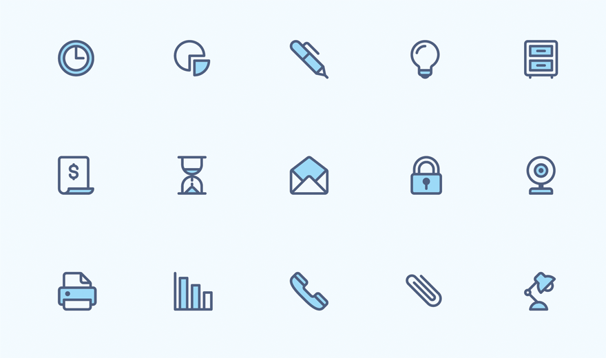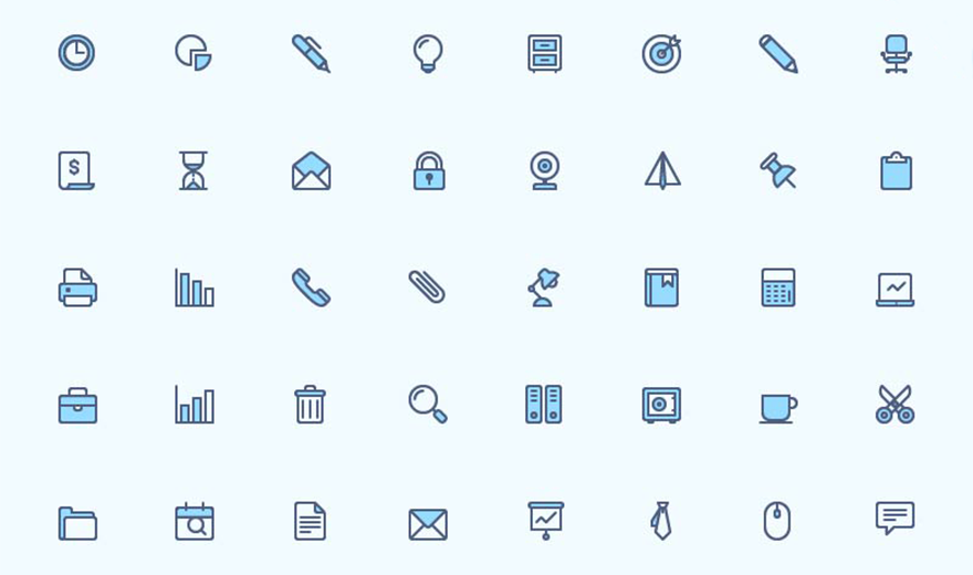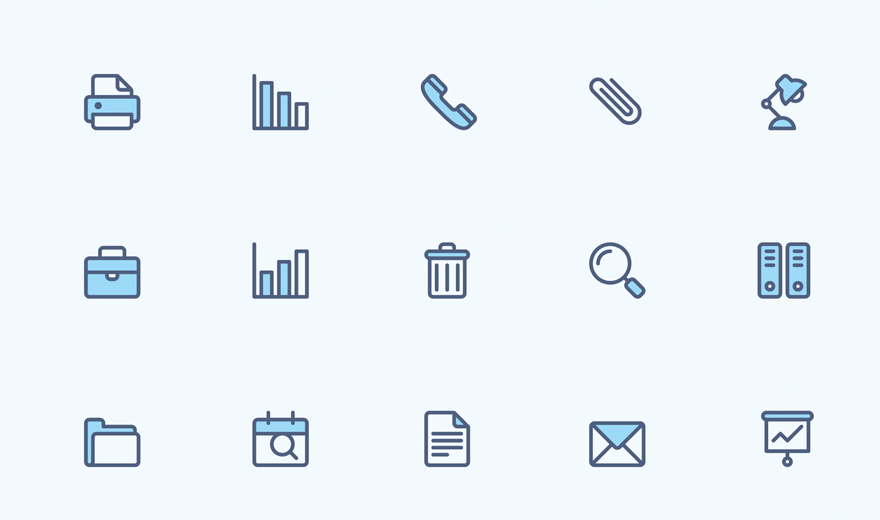 Enjoy this collection of free office icons. Set includes 40 duo-colored icons. Icons are available AI, EPS, and PNG formats, so you can use them as is or modify and adjust them to your needs.