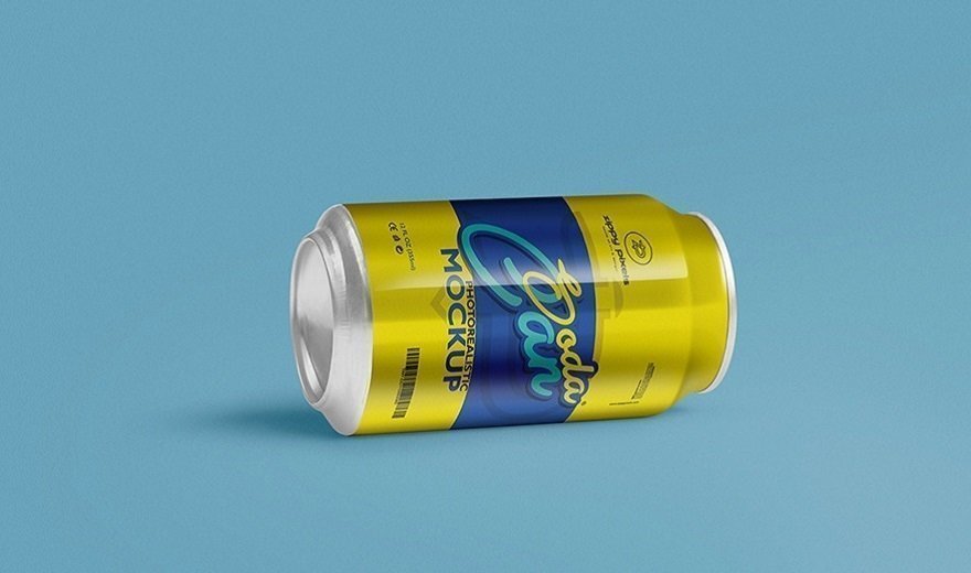 Download this free PSD mockup of soft drink 330ml can to present your packaging and labeling designs in a professional realistic manner. This aluminum beverage can mockup can be an essential part of any drink packaging design. This PSD template features an easy to customize label design, shadow, glow effect and background. The customizable parts of this free mockup utilize the Smart Object functionality, which lets you add your designs in matter of minutes.