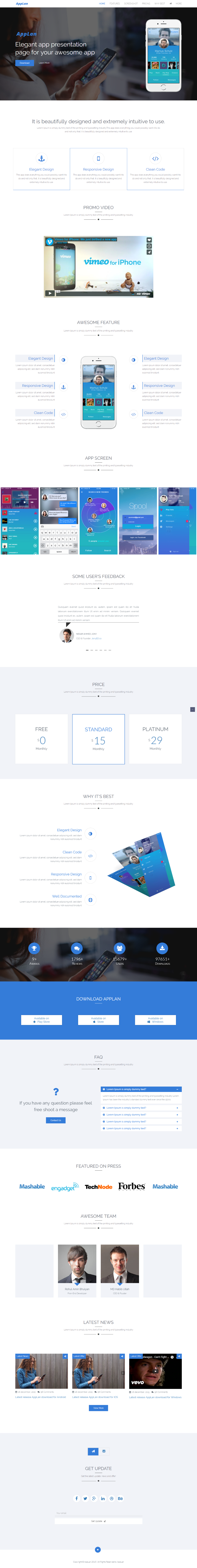 If you’re designing a landing page for your own or your client's mobile app, take a look at AppLan. AppLan is a free HTML landing page designed for presentation and promotion of your stunning application! It has lots of premade features which perfectly suits to any application. This free landing page template is built with Twitter Bootstrap 3, HTML5 and CSS3. The pre-configured template features multiple sections: app information and features, screenshots, pricing, team members, sign-up, testimonials and other. This free HTML template features a responsive design layout, so it looks perfect on any device. It also has a working contact form made with PHP, it uses free Google Fonts, Font Awesome icons, features clean code and clean design, and, of course, it is pretty easy to customize.