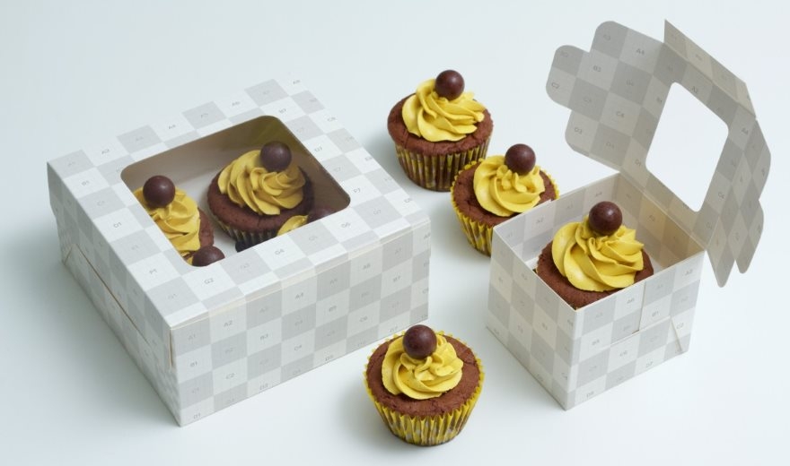 Download this free PSD Mockup of two beautiful cupcake boxes. This is a super-customizable free box mockup with a window for cupcakes. Use Smart Objects to see how easy it is to customize one of the most complex objects of packaging, the paper boxes! Just put your design of the disassembled box and with only one click in Photoshop, you'll see how the box is assembled magically! This free mockup includes 2 boxes: one for 4 Cupcakes box and one for 1 Cupcake box, carefully laid on a clear and customizable background.