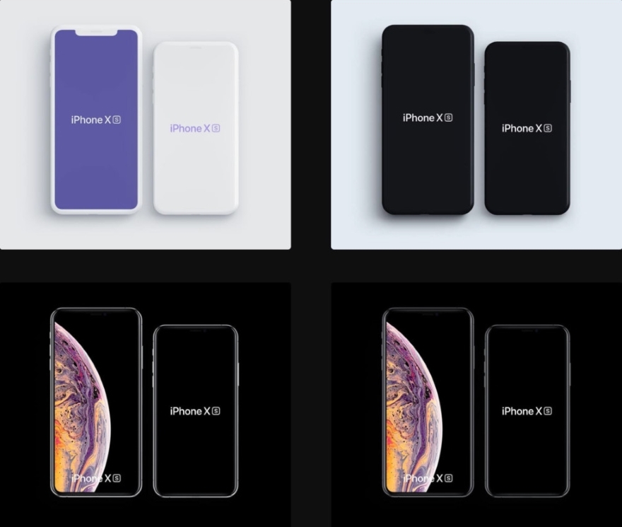 Download a free PSD mockup set of iPhone XS and iPhone XS Max. This free iPhone mockup includes multiple views of the device in high resolution, made with undisclosed attention to details. This free PSD mockup is a perfect choice for UI or branding projects. It features ultra-high resolution, changeable colors, adjustable shadows and reflections. You are free to choose from 6 different materials of iPhone, including the photorealistic, white clay and black matte versions. What is also important is that these iPhone XS mockups are free for personal and commercial projects. Enjoy!