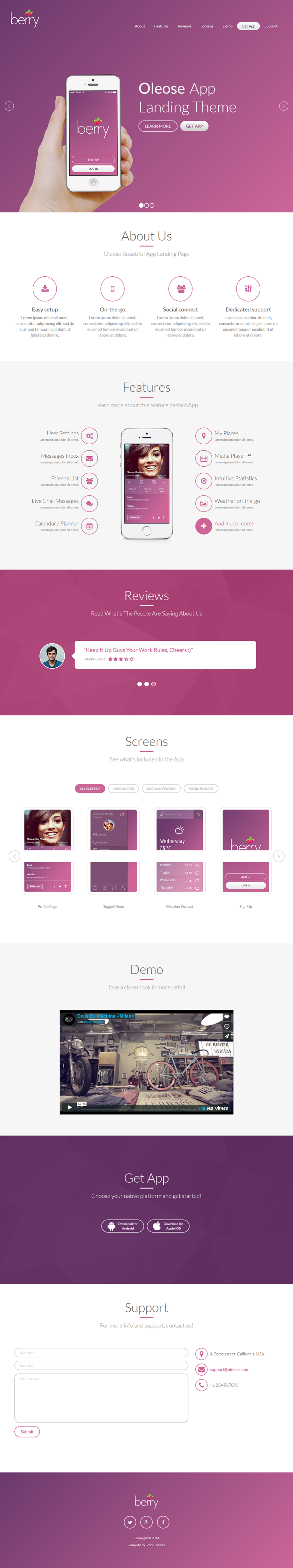 Free Mobile App Landing Page HTML Template - Oleose is an incredibly eye catching and fully responsive Bootstrap 3 Template for any app profissional landing page. Template comes with developer friendly and easy to customizable code. It works on all main web browsers “IE8+”, tablets and phones. This template comes with 3 color styles. Free Mobile App Landing Page HTML Template - Oleose is free to download.