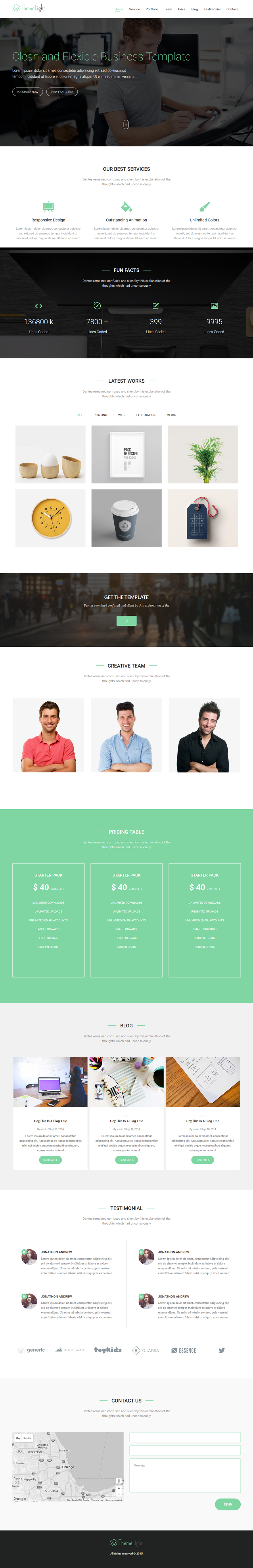 Free One Page Website HTML Template - Themelight is a blazing fast, responsive business one page website template, glutted with the fantastic interface and excellent professional features to run corporate firms seamlessly. The design of this theme is incredible, can impress visitors in the first impress. Free One Page Website HTML Template - Themelight is responsive, crafted following mobile first approach so that the theme can easily fit both inside the wide variety of large screen monitors and tiny mobile devices. The HTML5 and CSS3 business onepagetemplate is saturated with vibrant typography and highly interactive CSS3 animation and it`s free to download.