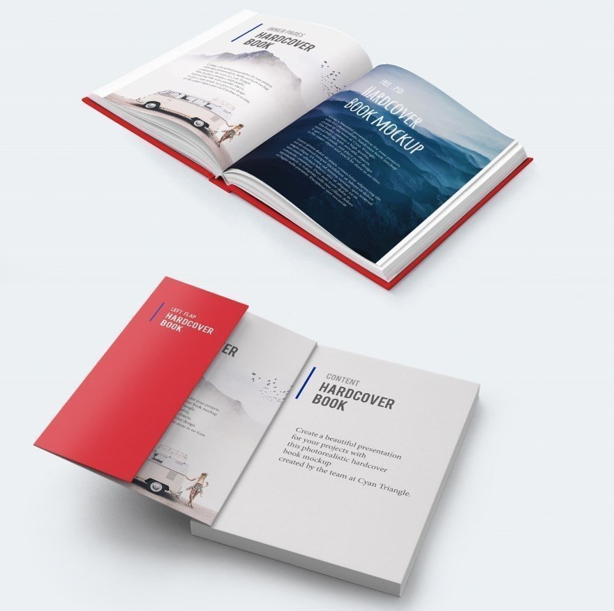 Download this fee photo-realistic hardcover books mockup set and create beautiful presentations for your projects. This free book mockup features a high quality, layered PSD file with movable objects. To get a neat result, just place your design in the smart object and you’ll be done in no time. This freebie contains 10 different mockups in total with different positions of books. Enjoy!