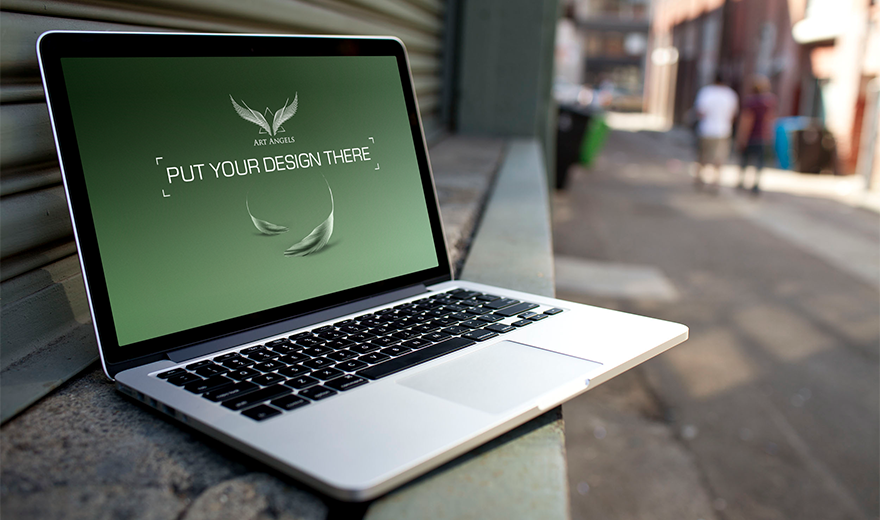 Download this realistic looking PSD mockup of MacBook Pro on the street. This free MacBook Pro template is awesome for presenting your design. It has smart objects, so it's supereasy to replace screen content.