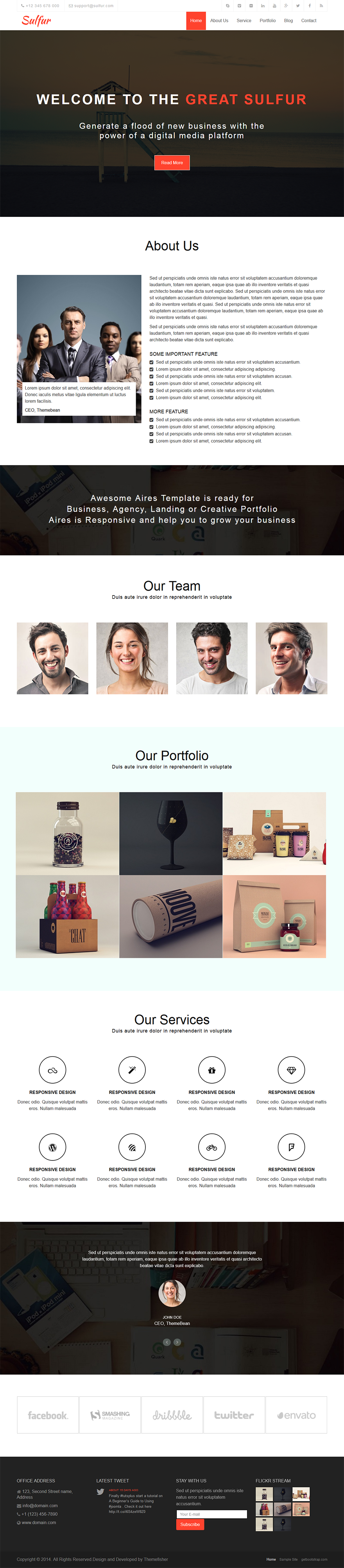 Sulfur is a free simple HTML template, carefully crafted to be tailored with multi purpose niches online. Perfectly suited for creative work, corporate, business, IT firm, portfolio showcase, and amazingly more. The Bootstrap 3 based website template is built with modern technology and trend, come with automatic compatibility with various viewing screen widths and mobile devices. So, you don’t need to worry about to make separate layouts for mobile, tablet, desktop, notebook, iPhone, feature phone, smartphone, and other devices which need support retina ready HTML templates. And it`s free to download.
