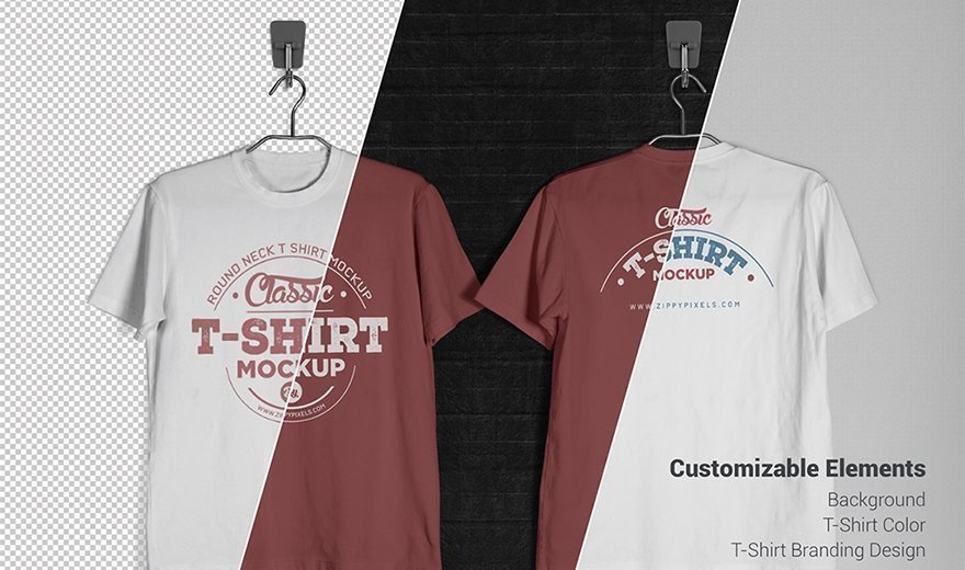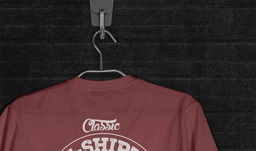 Download this free PSD mockup of a vintage round neck t-shirt and use it to showcase your awesome fashion design projects. This freebie features a hanging perspective