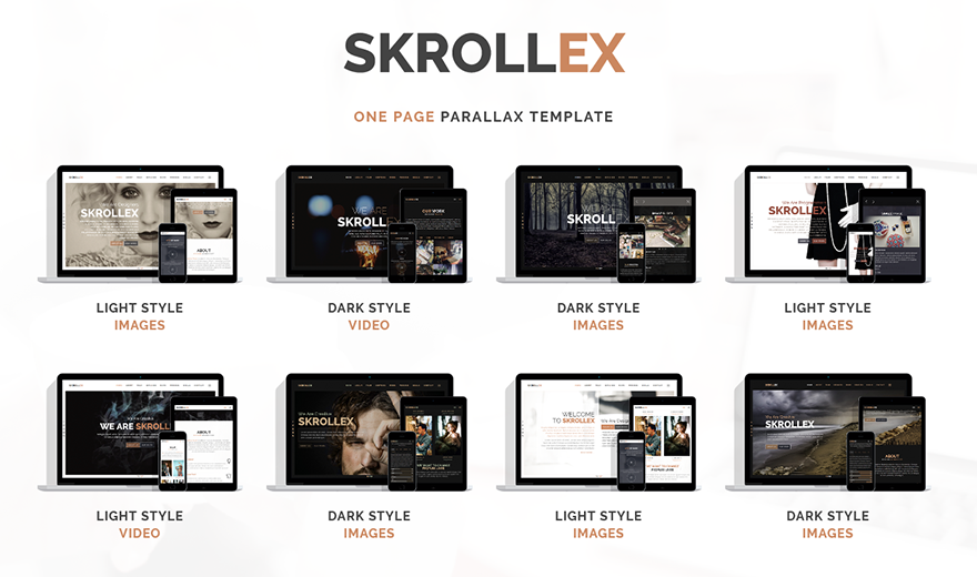 Skrollex is multi-purpose, creative, one page parallax, responsive theme for portfolio showcase, modern businesses, agency, photography, creative teams, resume, personal use, etc.