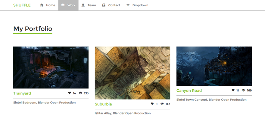 Shuffle is a multi purpose portfolio that is great for showcasing your amazing work. Each content section scrolls up and becomes fixed until the next one does giving it a stacking effect. It is built with HTML5 and CSS3 validated code.