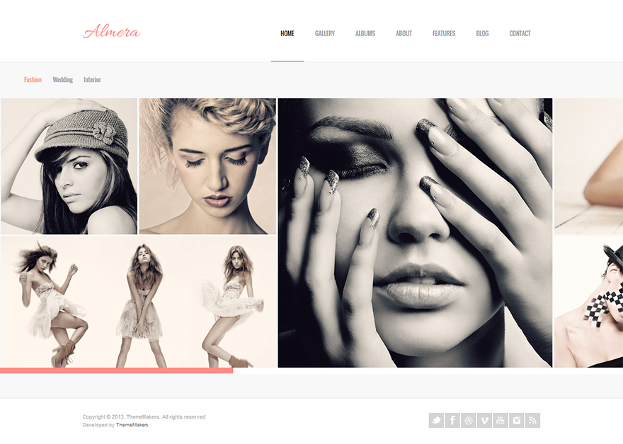 Our amazing Almera Responsive HTML5/CSS3 Portfolio Template definitely makes you happy with its nice looking design. Almera best suits all types of gallery and portfolio. It’s a great deal for professional photographers and artist to open their art, to share their art with the world. With awesome sliders you can show your projects. We made it possible for you to choose how exactly to present and illuminate your works. Three different types of slider will let you do that the best way. Also our Almera could be great present for your beloved to wedding anniversary, birthday, etc. The main feature of this template is dynamical content loading, which gives special visual effect and makes your website fly. Almera looks great on both wide screens and on portable devices.
