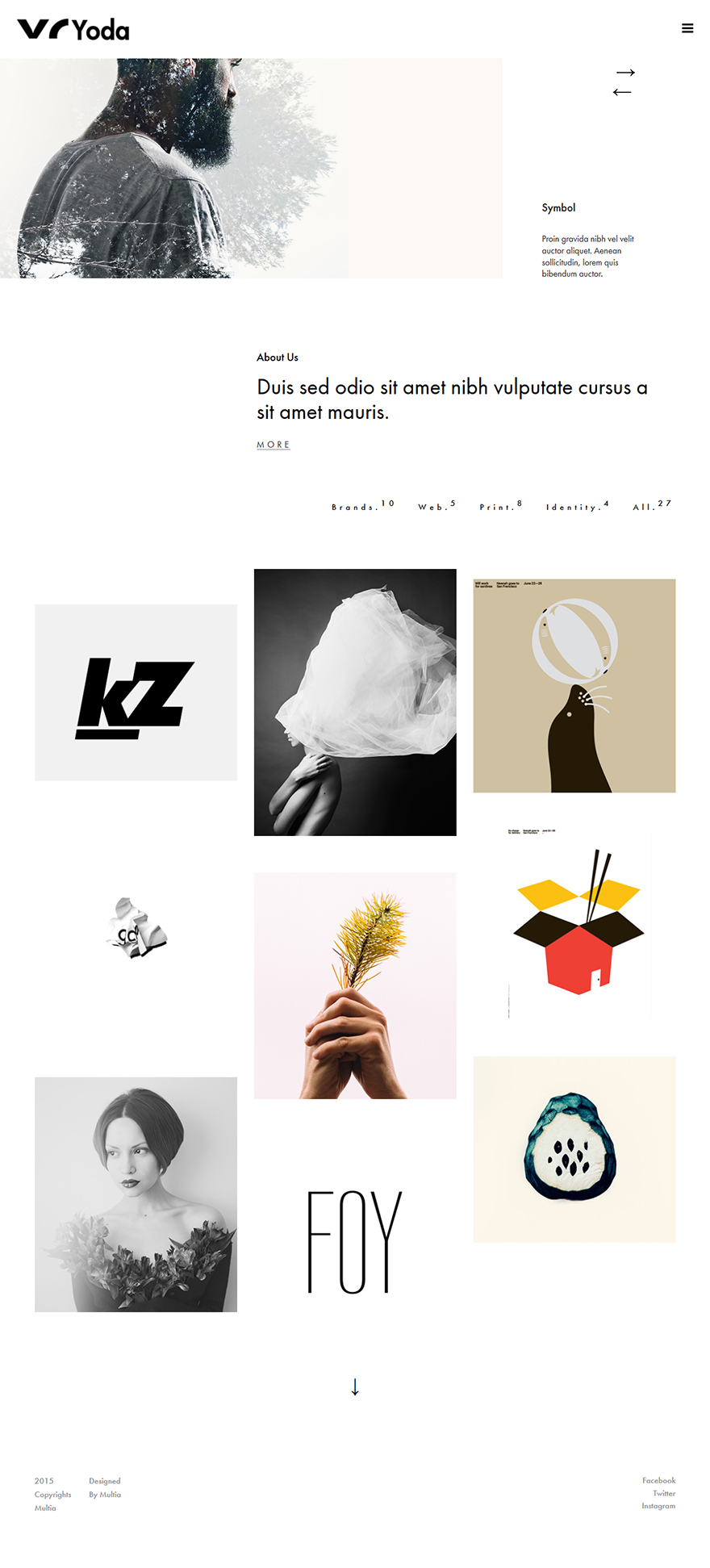 Yoda is a clean and minimalistic responsive template making it ideal for all to showcase their work in the most beautiful manner. Besides being a visually stunning theme, it is also technologically flexible, powerful and highly customizable. It is the perfect template for studios, designers, photographers, freelancers and all people in the design scene. Due to its unique design you will be able present your cool works in less clutter yet effective manner. Yoda is empowered by the latest advancements in HTML5 & CSS3 animations, and builds an engaging user experience by saturating the screen with your amazing artwork or photos. So, show your work & create immersive portfolios with Yoda.