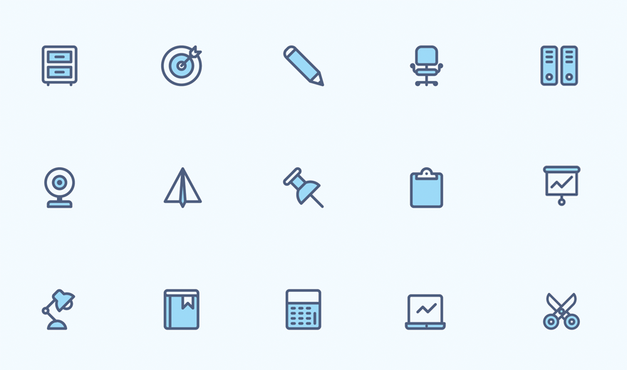Enjoy this collection of free office icons. Set includes 40 duo-colored icons. Icons are available AI, EPS, and PNG formats, so you can use them as is or modify and adjust them to your needs.