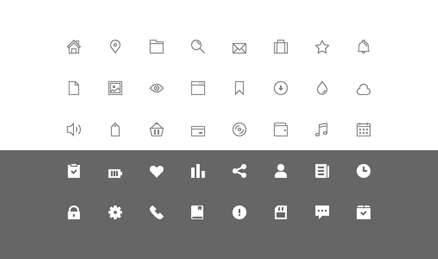 Check out this huge and totally free icon set! This set consists of hundreds of icons from different categories in two design styles: in solid color and outlined. This free icon pack is perfect to use both in the user interface and in any printed design, for example, posters or advertisings. The free icon set contains a lot of popular icons, such as arrows and controls, informative icons, popular web icons and many others.