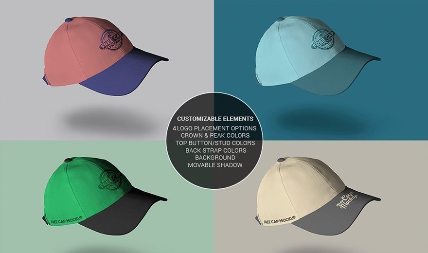 Download this free PSD mockup of a minimalistic baseball cap and use it to present your branding and fashion designs. This free cap mockup PSD features SmartObjects, so you can easily customize almost everything in its design: logo, the color of the cap, peak, and top button, background color, and shadow position!