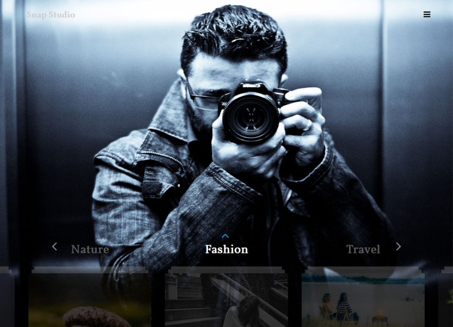 Free Photography Portfolio HTML Template - Snap Studio is a creative design photography portfolio template which will be perfect for Photographers. It's designed especially photographers in mind. Snap Studio is responsive, it looks stunning on all type of screens like desktop, laptop, tablet, phablet, iPhone etc.