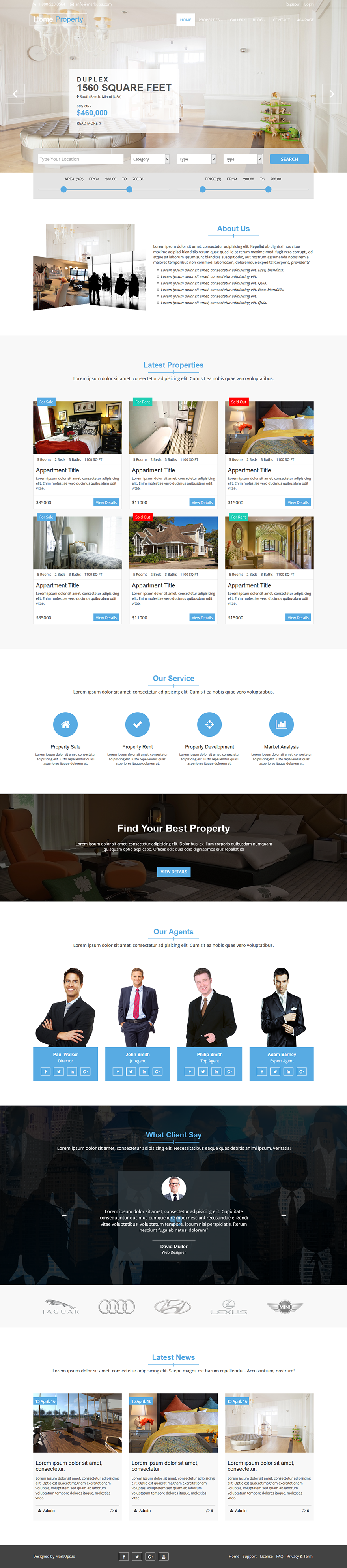 This free template has many useful features like full-screen slider, advanced search, about us, smooth menu with dropdown, latest properties and blog in homepage, services, agents with slider, client’s testimonial and client’s brand with slider, property listing page with grid & list view, property details page, gallery page, blog archive and blog single page, contact page, 404 error page, register and login page, custom google fonts, google map integration and much more.