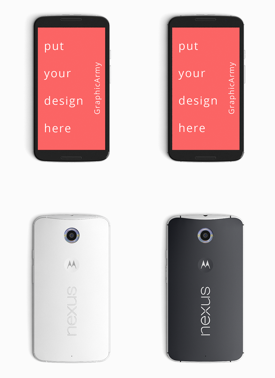 Motorola Google Nexus 6 PSD Mockup. It is in axonometric view, means that you can move it at will. Two colors and different postions make this mockUp realy universal and useful.
